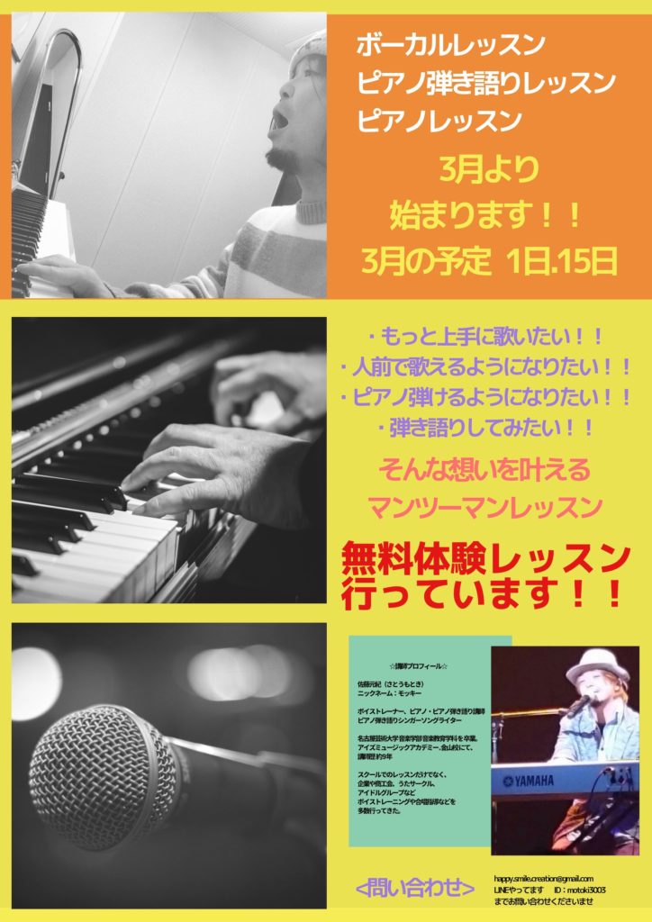 TOP > レッスンのお知らせ > ボーカル・ピアノ弾き語り・ピアノレッスン